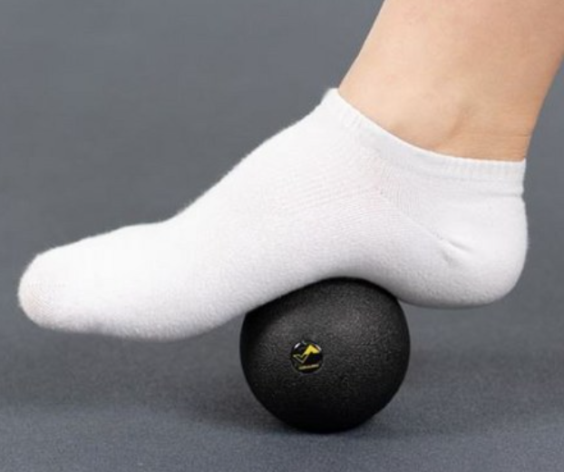 서서 마사지볼을 발바닥 아래에 두고 굴리며 뭉친 부위를 자극하세요.